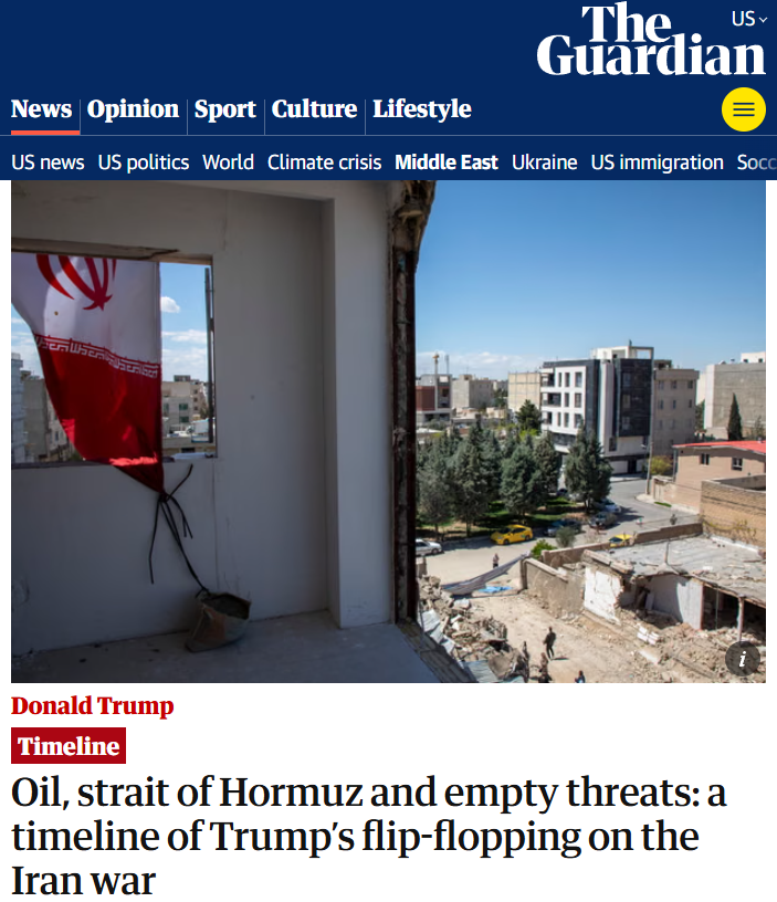 英国《卫报》4日的报道也总结了美国在对伊朗军事行动上,涉及夺取石油、霍尔木兹海峡和对伊威胁等各类出尔反尔的情况。